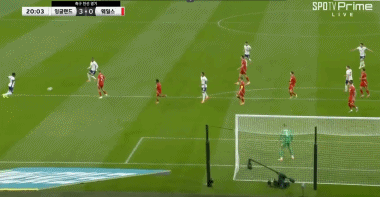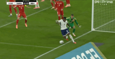 第20分钟,孔萨助攻,萨卡内切兜射轰出世界波,英格兰三球领先