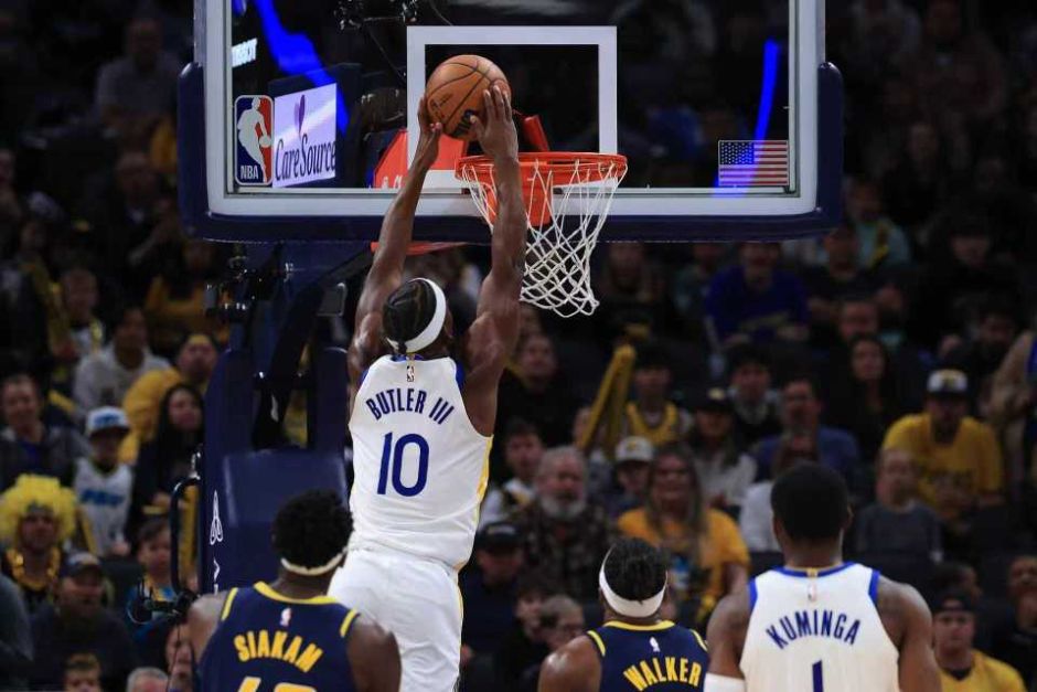 中场休息回来,第三节前半段内史密斯与西亚卡姆接连得分,勇士被步行者打出一波20-9攻势反超6分,勇士请求暂停。波杰姆斯基两罚全中,勇士还连续冲击内线追分,步行者同样接连得分,霍福德抛射与波杰姆斯基三分追到差1分打停步行者。双方冲击内线维持80-80,桑托斯三分与巴特勒连得5分引领8-2攻势,勇士单节30-29净胜1分,三节结束勇士88-82领先步行者。前三节比赛,勇士4人得分上双,库里18分、巴特勒14分、库明加15分与波杰姆斯基16分,步行者3人得分上双,内史密斯25分、西亚卡姆22分与昆顿-杰克逊13+9。