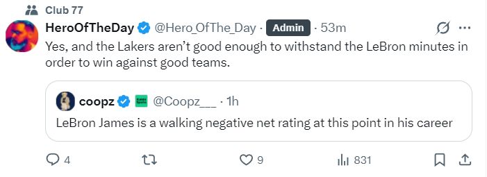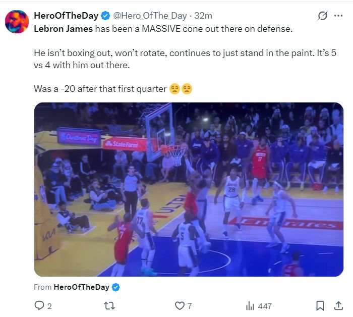 美媒HOT转推后写道:没错,湖人的硬实力无法承担勒布朗高超长的登场时间,所以无法在打强队时取胜。
