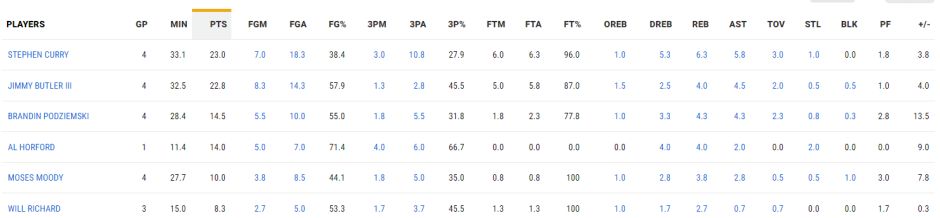 其实过去的四场比赛库里都发挥不佳,合计73中21,三分球43中12,命中率38.4%,三分命中率27.9%,场均23分6.3篮板5.8助攻1抢断3失误,效率值非常之低,但勇士队却拿到了3胜1负的傲人战绩。