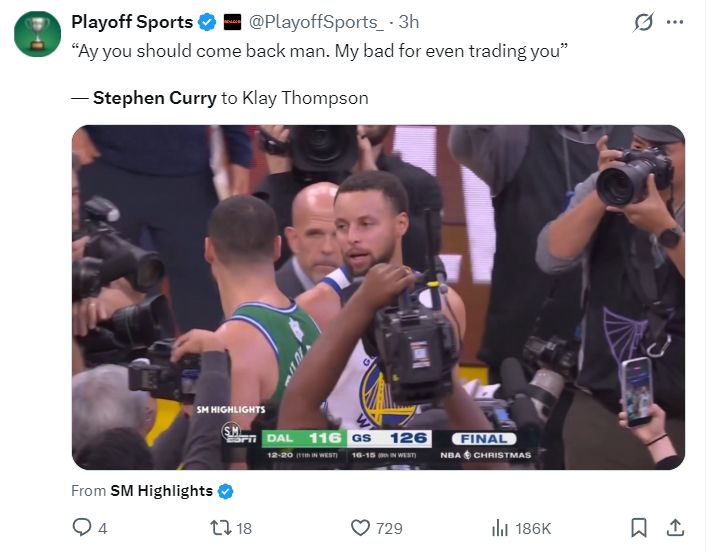 比赛结束后也发生了暖心一幕,库里与克莱拥抱后拉着克莱不让他走,两兄弟是各种交头接耳,很多勇士球迷都希望克莱能重返大通中心,此役克莱26分钟只有7分进账状态低迷。
