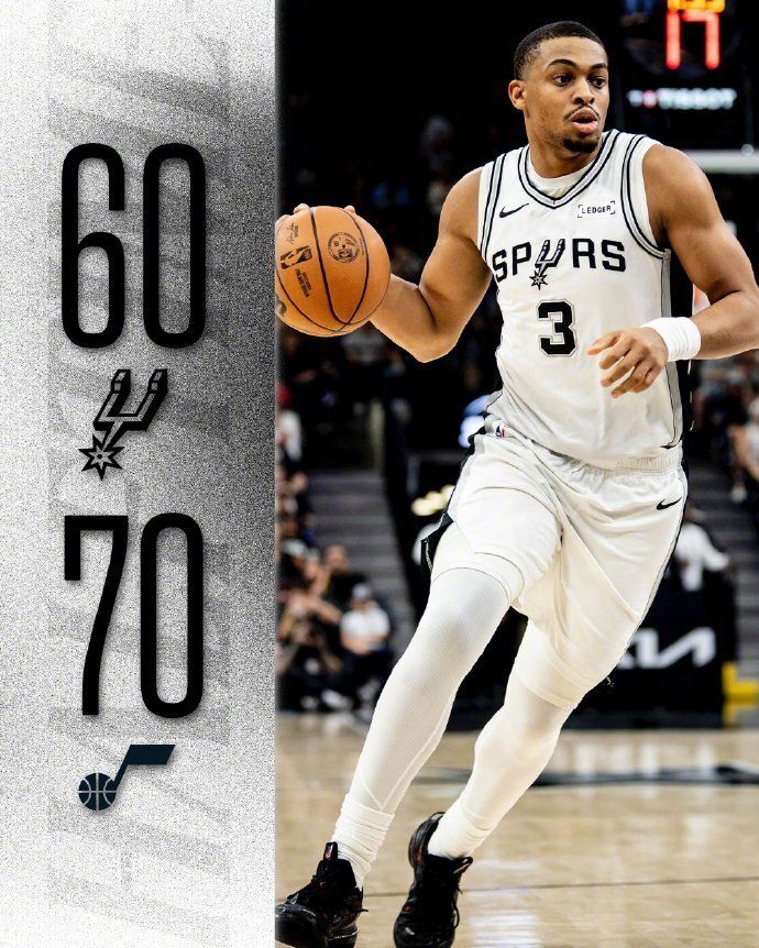 马刺带着11分落后差距进入第四节比赛,文班亚马完成劲爆隔扣,卡斯尔攻传结合也是引领马刺重新追平比分。只是爵士多点开花打出一波关键11-2攻势,马刺随后被拉开两位数落后差距,最终马刺爆冷输给爵士结束8连胜。