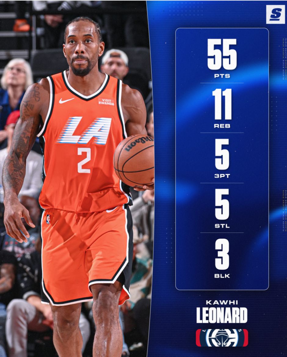 在快船四连胜期间,战神卡场均39分9.8篮板4助攻2.8抢断1.5盖帽,他打出了自己生涯最出色的一个赛季,只可惜快船还是没有进入附加赛圈层,希望他能延续这个竞技状态下去吧。