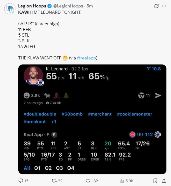 北京时间12月29日,快船112-99大胜活塞拿到四连胜。这场比赛快船一度领先活塞26分,可在末节快船全队开始松懈,活塞疯狂追分又让小卡、哈登加班,好在决胜时刻两个巨头罚球很稳定帮助球队拿下胜利,小卡55分也迎来生涯之夜。