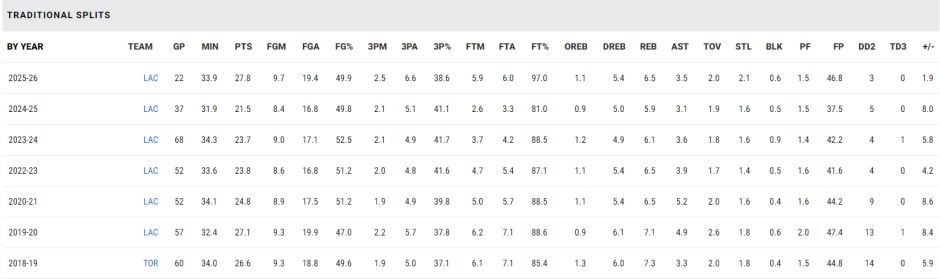 6.小卡与乔治成为快船队史仅有多次45+5+5三分的球员;